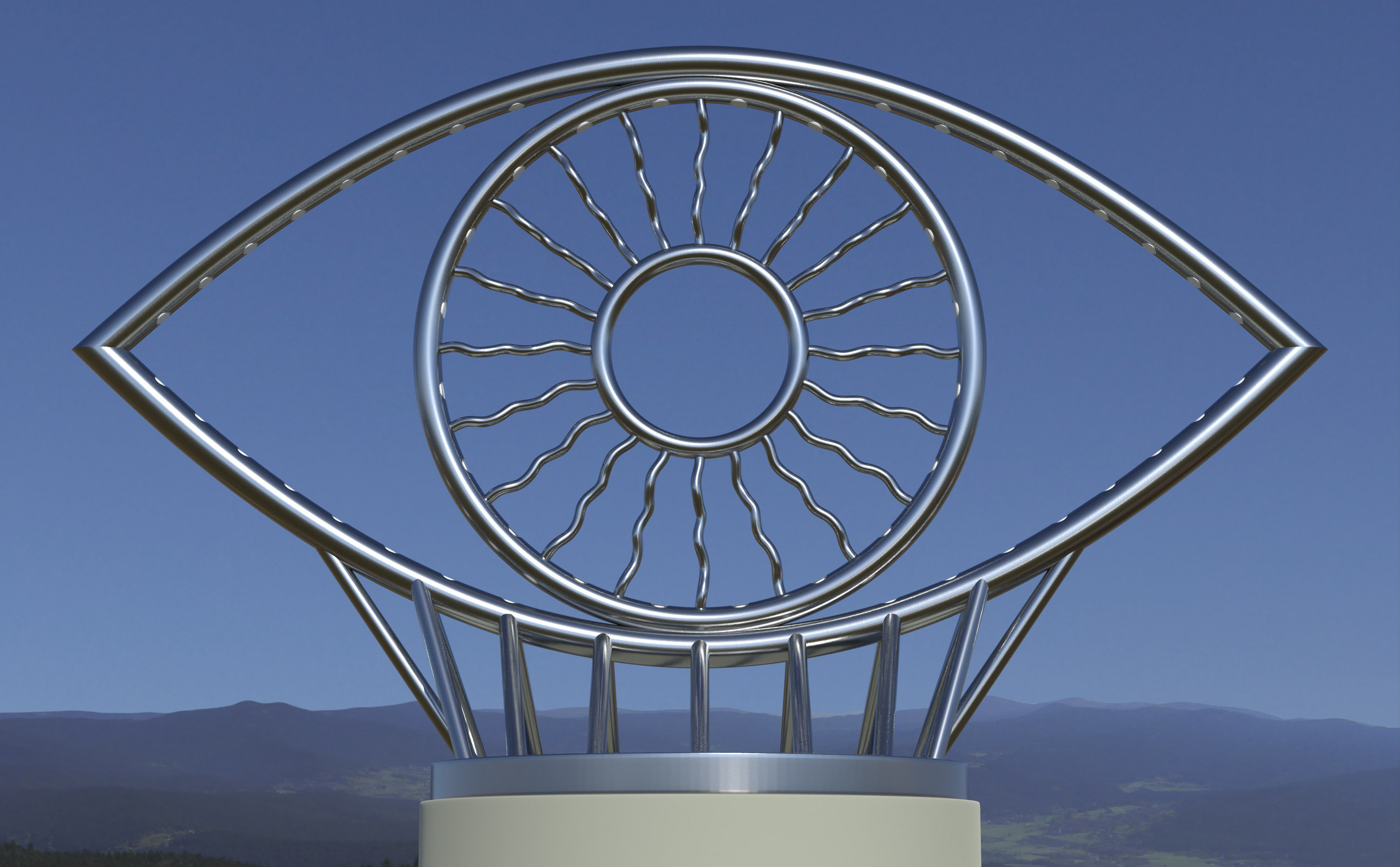 „Ein riesiges Sinnesorgan auf dem Dach eines Militärturms. Hier hat sich die Gewaltbereitschaft in friedliches Waldesrauschen verwandelt. Tanja Federls Auge ist der Beweis, dass sich die Welt doch ändern kann. Und zwar zum Besseren.“